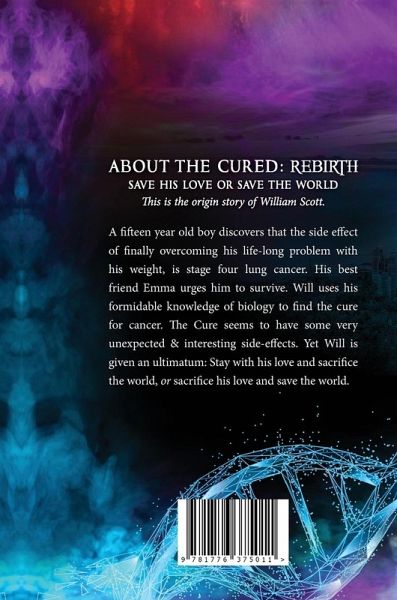 Save His Love or Save the World This is the origin story of William Scott. A fifteen year old boy discovers that the side effect of finally overcoming his life-long problem with his weight, is stage four lung cancer. His best friend Emma urges him to survive. Will uses his formidable knowledge of biology to find the cure for cancer. The Cure gives Will a new body that seems to grow stronger and faster with each passing day. But Will is given an ultimatum: Stay with his love and sacrifice the world, or sacrifice his love and save the world.