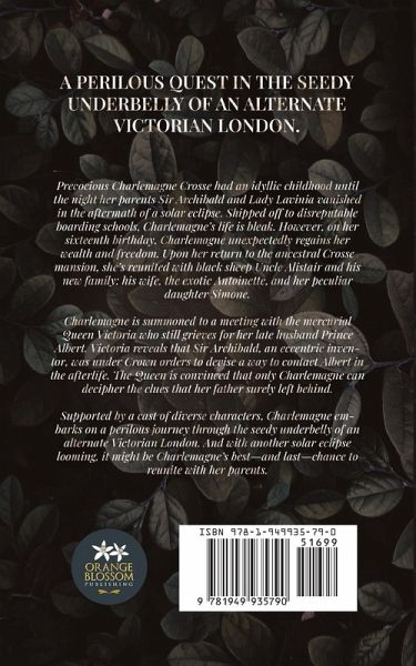 Precocious Charlemagne Crosse had an idyllic childhood until the night her parents Sir Archibald and Lady Lavinia vanished in the aftermath of a solar eclipse. Shipped off to disreputable boarding schools, Charlemagne's life is bleak. However, on her sixteenth birthday, Charlemagne unexpectedly regains her wealth and freedom. Upon her return to the ancestral Crosse mansion, she's reunited with black sheep Uncle Alistair and his new family: his wife, the exotic Antoinette, and her peculiar daughter Simone. Charlemagne is summoned to a meeting with the mercurial Queen Victoria who still grieves for her late husband Prince Albert. Victoria reveals that Sir Archibald, an eccentric inventor, was under Crown orders to devise a way to contact Albert in the afterlife. The Queen is convinced that only Charlemagne can decipher the clues that her father surely left behind. Supported by a cast of diverse characters, Charlemagne embarks on a perilous journey through the seedy underbelly of an alternate Victorian London. And with another solar eclipse looming, it might be Charlemagne's best-and last-chance to reunite with her parents.