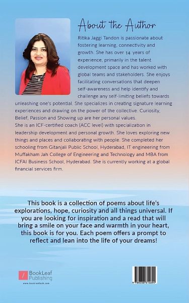 ""This book is a collection of poems about life's explorations, hope, curiosity and all things universal. If you are looking for a read that will bring a smile on your face and warmth in your heart as well some inspiration that sparks your own intellectual curiosity, this book is for you. Each poem offers a prompt to reflect on and lean into the life of your dreams!