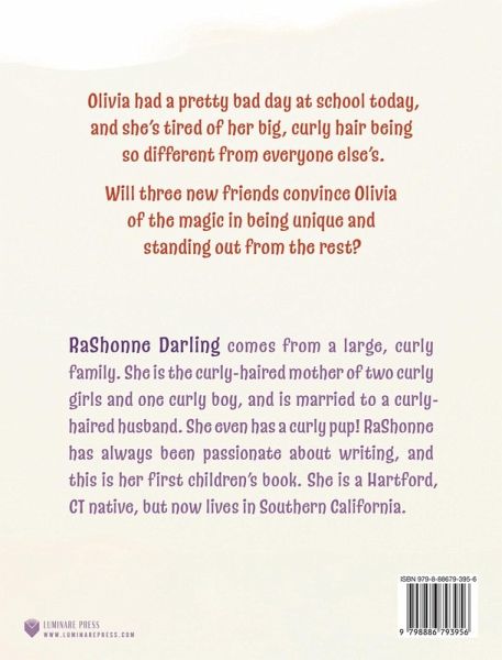 Olivia had a pretty bad day at school today, and she's tired of her big, curly hair being so different from everyone else's. Will three new friends convince Olivia of the magic in being unique and standing out from the rest?
