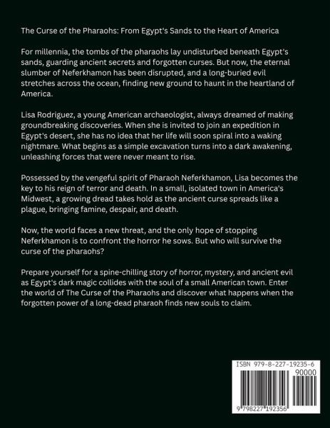 The Curse of the Pharaohs: From Egypt's Sands to the Heart of America For millennia, the tombs of the pharaohs lay undisturbed beneath Egypt's sands, guarding ancient secrets and forgotten curses. But now, the eternal slumber of Neferkhamon has been disrupted, and a long-buried evil stretches across the ocean, finding new ground to haunt in the heartland of America. Lisa Rodriguez, a young American archaeologist, always dreamed of making groundbreaking discoveries. When she is invited to join an expedition in Egypt's desert, she has no idea that her life will soon spiral into a waking nightmare. What begins as a simple excavation turns into a dark awakening, unleashing forces that were never meant to rise. Possessed by the vengeful spirit of Pharaoh Neferkhamon, Lisa becomes the key to his reign of terror and death. In a small, isolated town in America's Midwest, a growing dread takes hold as the ancient curse spreads like a plague, bringing famine, despair, and death. Now, the world faces a new threat, and the only hope of stopping Neferkhamon is to confront the horror he sows. But who will survive the curse of the pharaohs? Prepare yourself for a spine-chilling story of horror, mystery, and ancient evil as Egypt's dark magic collides with the soul of a small American town. Enter the world of The Curse of the Pharaohs and discover what happens when the forgotten power of a long-dead pharaoh finds new souls to claim. About the Author: Mohamed Elshenawy I am Mohamed Elshenawy, a horror and fiction author, passionate about crafting stories that send shivers down your spine with a unique narrative style. With a keen eye for suspense and a talent for weaving intricate plots, I aim to captivate readers' imaginations and take them on journeys through the darkest corners of the human psyche. My stories often explore themes of fear, mystery, and the unknown, reflecting a deep understanding of what truly terrifies us. In addition to writing, I am also a language teacher and professional translator, fluent in Arabic, English, Portuguese, and Spanish. My expertise in multiple languages enriches my storytelling and allows me to connect with a diverse, global audience. Balancing my love for words with my passion for narrative, my goal is to create engaging stories that leave a lasting impact on readers around the world.