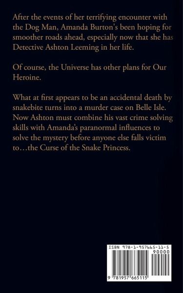 After the events of her terrifying encounter with the Dog Man, Amanda Burton's been hoping for smoother roads ahead, especially now that she has Detective Ashton Leeming in her life. Of course, the Universe has other plans for Our Heroine. What at first appears to be an accidental death by snakebite turns into a murder case on Belle Isle. Now Ashton must combine his vast crime solving skills with Amanda's paranormal influences to solve the mystery before anyone else falls victim to the Curse of the Snake Princess.