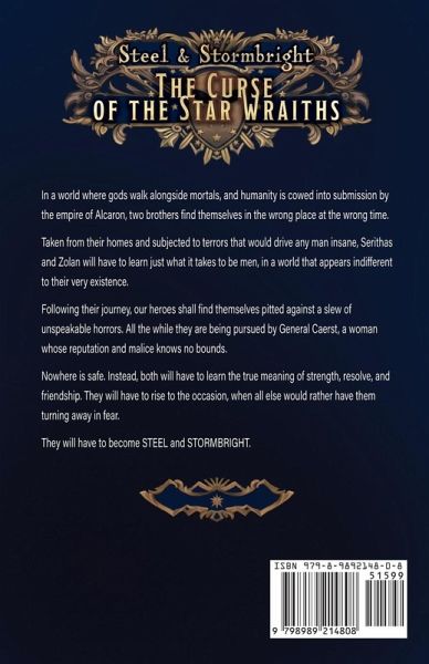 In a world where gods walk alongside mortals, and humanity is cowed into submission by the empire of Alcaron, two brothers find themselves in the wrong place at the wrong time. Taken from their homes and subjected to terrors that would drive any man insane, Serithas and Zolan will have to learn just what it takes to be men, in a world that appears indifferent to their very existence. Following their journey, our heroes shall find themselves pitted against a slew of unspeakable horrors. All the while they are being pursued by General Caerst, a woman whose reputation and malice knows no bounds. Nowhere is safe. Instead, both will have to learn the true meaning of strength, resolve, and friendship. They will have to rise to the occasion, when all else would rather have them turning away in fear. They will have to become STEEL and STORMBRIGHT.