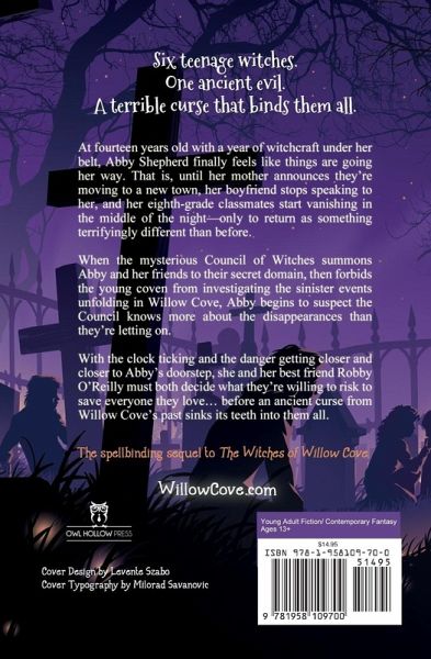 Six teenage witches. One ancient evil. A terrible curse that binds them all. In this spellbinding sequel to The Witches of Willow Cove, Abby Shepherd and her coven of teenage witches must confront an undead terror that threatens the safety of their friends, families, and maybe even the entire world. Now fourteen years old and with a year of witchcraft under her belt, Abby finally feels like things are going her way. That is, until her mother announces they're moving to a new town, her boyfriend stops speaking to her, and her eighth-grade classmates start vanishing in the middle of the night-only to return as something terrifyingly different than before. When the mysterious Council of Witches summons Abby and her friends to their secret domain, then forbids the young coven from investigating the sinister events unfolding in Willow Cove, Abby begins to suspect the Council knows more about the disappearances than they're letting on. With the clock ticking and the danger getting closer and closer to Abby's doorstep, she and her best friend Robby O'Reilly must both decide what they're willing to risk to save everyone they love... before an ancient curse from Willow Cove's past sinks its teeth into them all.