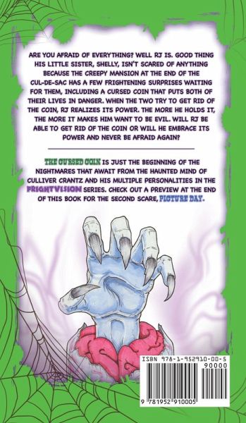 "Crantz begins a series, in the vein of R.L. Stine's Goosebumps books, with this chilling blend of mystery and SF ... This gleefully macabre tale hints at a series with great potential." - Kirkus Reviews Welcome to the haunting world of FrightVision, where a single coin holds the power to unleash terror beyond your wildest fears. Follow the journey of RJ, a timid boy who is afraid of everything, especially the creepy mansion down the street. When his little sister, Shelly, finds an ordinary-looking coin, they trigger a dark curse that threatens to consume RJ's mind. Will he succumb to the coin's evil influence or will he find the bravery to resist its dark power? Get ready for a heart-pounding adventure filled with suspense, thrills, and chills. Blending spookiness and sci-fi, the FrightVision series takes you on a journey through multiple characters, as they face their own unique grave dangers connected to The Cursed Coin. A never-ending loop, a haunted graveyard, a backpack brought to life, and a peephole leading to another dimension are just a few of the experiences they will be forced to face. But the key to it all is RJ. If he can resist the coin, all of this will go away... but the power of the coin is irresistible. Transport yourself to a world of chills and thrills with the FrightVision series! With 12 bone-chilling books to choose from, there's a nightmare waiting for everyone. Whether you're a fan of mystery, suspense, or the supernatural, these books will leave you on the edge of your seat! So what are you waiting for? Your nightmare is ready. Let's begin! Join the spooky journey and don't miss a page as FrightVision continues with: Picture Day, Wishful Thinking, Framed for Life, #GraveyardChallenge, The Attack of the Yellow Smart Sack, The Cursed Coin 2, Broken Hearts, The Peephole, The Cursed Coin 3, and Comic Book Chaos! A 2020 Story Monsters Approved! Book Contest Winner
