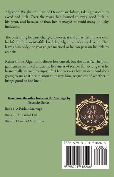 Algernon Wright, the Earl of Draconhawthshire, takes great care to avoid bad luck. Over the years, he's learned to sway good luck in his favor, and because of that, he's managed to avoid many unlucky incidents. The only thing he can't change, however, is the curse that hovers over his life. On his twenty-fifth birthday, Algernon is doomed to die. That leaves him only one year to get married so he can pass on his title to an heir. Ideally, the lady he marries will be a spinster who isn't all that interested in marriage but will be happy to be a mother. Then, when he dies early, neither one of them will miss each other. Instead of the old spinster he hopes to find, however, he comes across Miss Reina Livingstone. She is vibrant and full of life. She gives him the one thing he lost over the years: hope. Reina knows Algernon believes he's cursed, but she doesn't. The poor gentleman has lived under the heaviness of sorrow for so long that he hasn't really learned to enjoy life. He deserves a love match. And she's going to make it her mission to marry him, regardless of whether it brings good or bad luck.