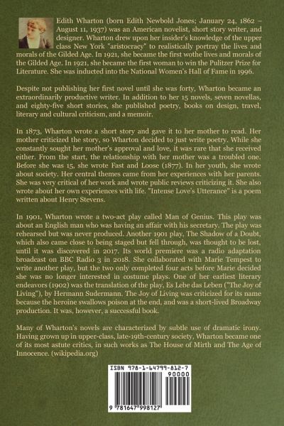 Edith Wharton (born Edith Newbold Jones; January 24, 1862 - August 11, 1937) was an American novelist, short story writer, and designer. Wharton drew upon her insider's knowledge of the upper class New York "aristocracy" to realistically portray the lives and morals of the Gilded Age. In 1921, she became the first woman to win the Pulitzer Prize for Literature. She was inducted into the National Women's Hall of Fame in 1996. Despite not publishing her first novel until she was forty, Wharton became an extraordinarily productive writer. In addition to her 15 novels, seven novellas, and eighty-five short stories, she published poetry, books on design, travel, literary and cultural criticism, and a memoir. In 1873, Wharton wrote a short story and gave it to her mother to read. Her mother criticized the story, so Wharton decided to just write poetry. While she constantly sought her mother's approval and love, it was rare that she received either. From the start, the relationship with her mother was a troubled one. Before she was 15, she wrote Fast and Loose (1877). In her youth, she wrote about society. Her central themes came from her experiences with her parents. She was very critical of her work and wrote public reviews criticizing it. She also wrote about her own experiences with life. "Intense Love's Utterance" is a poem written about Henry Stevens. In 1901, Wharton wrote a two-act play called Man of Genius. This play was about an English man who was having an affair with his secretary. The play was rehearsed but was never produced. Another 1901 play, The Shadow of a Doubt, which also came close to being staged but fell through, was thought to be lost, until it was discovered in 2017. Its world premiere was a radio adaptation broadcast on BBC Radio 3 in 2018. She collaborated with Marie Tempest to write another play, but the two only completed four acts before Marie decided she was no longer interested in costume plays. One of her earliest literary endeavors (1902) was the translation of the play, Es Lebe das Leben ("The Joy of Living"), by Hermann Sudermann. The Joy of Living was criticized for its name because the heroine swallows poison at the end, and was a short-lived Broadway production. It was, however, a successful book. Many of Wharton's novels are characterized by subtle use of dramatic irony. Having grown up in upper-class, late-19th-century society, Wharton became one of its most astute critics, in such works as The House of Mirth and The Age of Innocence. (wikipedia.org)