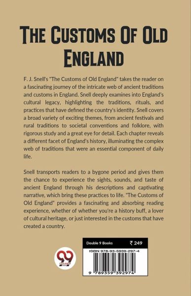F. J. Snell's "The Customs of Old England" takes the reader on a fascinating journey of the intricate web of ancient traditions and customs in England. Snell deeply examines into England's cultural legacy, highlighting the traditions, rituals, and practices that have defined the country's identity. Snell covers a broad variety of exciting themes, from ancient festivals and rural traditions to societal conventions and folklore, with rigorous study and a great eye for detail. Each chapter reveals a different facet of England's history, illuminating the complex web of traditions that were an essential component of daily life. Snell transports readers to a bygone period and gives them the chance to experience the sights, sounds, and taste of ancient England through his descriptions and captivating narrative, which bring these practices to life. "The Customs of Old England" provides a fascinating and absorbing reading experience, whether of whether you're a history buff, a lover of cultural heritage, or just interested in the customs that have created a country.