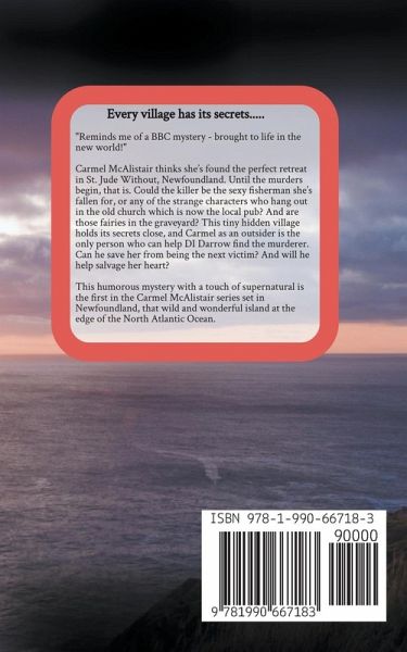 Every village has its secrets... Carmel McAlistair thinks she's found the perfect retreat in St. Jude Without, Newfoundland. Until the murders begin, that is... Could the killer be the sexy fisherman she's fallen for, or any of the strange characters who hang out in the old church which is now the local pub? The witch next door with her fairies doesn't help matters at all. This tiny hidden village holds its secrets close, and Carmel as an outsider is the only person who can help Scottish DI Darrow find the murderer. Can he save her from being the next victim? And will he help salvage her heart? This humorous mystery with a touch of supernatural is the first in the Carmel McAlistair series set in Newfoundland, that wild and wonderful island at the edge of the North Atlantic Ocean.