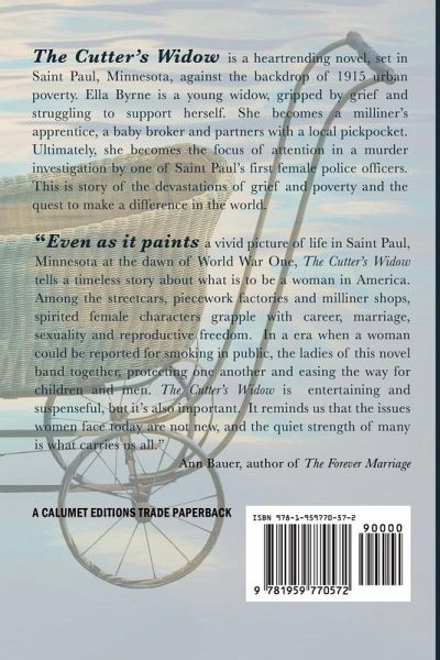 The Cutter's Widow is a heartrending novel, set in Saint Paul, Minnesota, against the backdrop of 1915 urban poverty. Ella Byrne is a young widow, gripped by grief and struggling to support herself. She becomes a milliner's apprentice, a baby broker and partners with a local pickpocket. Ultimately, she becomes the focus of attention in a murder investigation by one of Saint Paul's first female police officers. This is story of the devastations of grief and poverty and the quest to make a difference in the world.