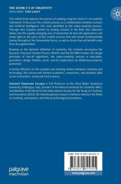 Drawing on the dynamic definition of creativity, the contents encompass the Dynamic Universal Creative Process (DUCP) and the DA VINCI model, the design principles of Gen-AI algorithms, the cyber-creativity process in education, journalism, design, fashion, music, and its implications on intellectual property protection.