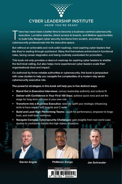 There has never been a better time to become a business-centred cybersecurity executive. Lucrative salaries, direct access to boards, and lifetime opportunities to build fully-fledged cyber security functions from scratch, are enticing cybersecurity professionals into the executive space. But without an actionable and rock-solid roadmap, most aspiring cyber leaders feel like they're wading through quicksand. Many find themselves entrenched in functional roles, facing career stagnation and being routinely overlooked for promotion. This book not only provides a clearcut roadmap for aspiring cyber leaders to shatter the technical ceiling, but also helps more experienced cyber leaders scale their organisational clout and impact. Co-authored by three notable authorities in cybersecurity, this book is jampacked with case studies to help you navigate the complexities of a modern-day senior cybersecurity executive role. The powerful strategies in this book will help you in five distinct ways: Stand Out in Executive Interviews: convey leadership authority and cultural fit Deliver with Confidence in Your First 100 Days: achieve quick wins and set the stage for long-term success in your new role Transform into a Business Executive: radically uplift your strategic influencing skills to have impact with boards and C-suite Build and Lead High-Performing Teams: coach for performance, empower to forge trust, and instil team resilience Navigate Complex Cybersecurity Challenges: gain insights from real-world case studies to confidently handle the high-stakes situations