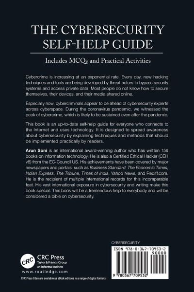 Cybercrime is increasing at an exponential rate. Every day, new hacking techniques and tools are being developed by threat actors to bypass security systems and access private data. Most people do not know how to secure themselves, their devices, and their media shared online. Especially now, cybercriminals appear to be ahead of cybersecurity experts across cyberspace. During the coronavirus pandemic, we witnessed the peak of cybercrime, which is likely to be sustained even after the pandemic. This book is an up-to-date self-help guide for everyone who connects to the Internet and uses technology. It is designed to spread awareness about cybersecurity by explaining techniques and methods that should be implemented practically by readers. Arun Soni is an international award-winning author who has written 159 books on information technology. He is also a Certified Ethical Hacker (CEH v8) from the EC-Council US. His achievements have been covered by major newspapers and portals, such as Business Standard, The Economic Times, Indian Express, The Tribune, Times of India, Yahoo News, and Rediff.com. He is the recipient of multiple international records for this incomparable feat. His vast international exposure in cybersecurity and writing make this book special. This book will be a tremendous help to everybody and will be considered a bible on cybersecurity.