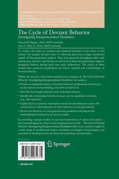 To conduct the study on criminal and antisocial behavior at the center of this volume, the authors devoted years to collecting data from a large community sample of first-generation subjects. Data were garnered throughout their early adolescence, twenties, and thirties as well as from these first-generation subjects biological children during their own early adolescence. The results of these studies have profound implications for future research and methodology on deviant behavior. This book presents an integrative theory of deviant behavior, synthesizing social stress, social control, societal labeling, and other perspectives. It describes the intergenerational cycle of deviant behaviour and identifies the relationship between deviance and its significant correlates (e.g., self-rejection). The book offers well-rounded insights to a wide range of professional readers, including sociologists, criminologists, and specialists in developmental and abnormal psychology and psychiatry.