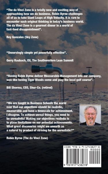 "The da Vinci Zone is a totally new and exciting way of approaching how we do business. Robin Byrne challenges all of us to take Giant Leaps at High Velocity. It is rare to encounter such original thinking in today's business world. The da Vinci Zone is a gourmet dinner in a world of fast-food disappointment". Rey Gonzales (Sky Zone) "Unnervingly simple yet powerfully effective". Gerry Raubach, ISI, The Southwestern Lean Summit "Having Robin Byrne deliver Measurable Management into our company, was like having Tiger Woods come and play the local golf course". Bill Shorma, CEO, Shur-Co. (retired) "We are taught in Business Schools the world over that our objectives should be realistic, measurable and have a timescale for achievement. I disagree. To achieve unreal things, you need to be unrealistic! Making our objectives realistic is to place limitations on our potential achievements. What great discoveries might we unearth as a natural bi-product of striving for the unrealistic?" Robin Byrne (The da Vinci Zone)