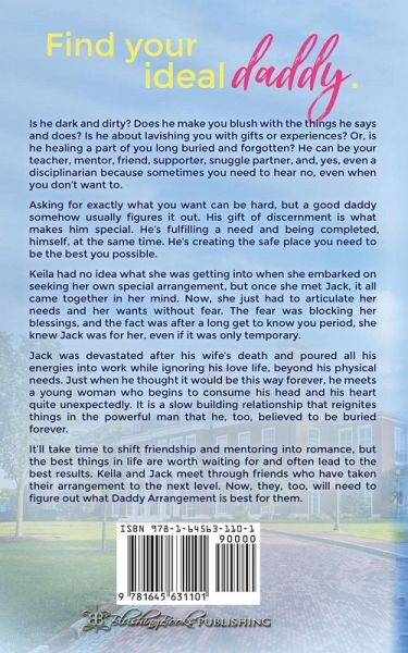 Find your ideal daddy. Is he dark and dirty? Does he make you blush with the things he says and does? Is he about lavishing you with gifts or experiences? Or is he healing a part of you long buried and forgotten? He can be your teacher, mentor, friend, supporter, snuggle partner, and, yes, even a disciplinarian because sometimes you need to hear no, even when you don't want to. Keila had no idea what she was getting into when she embarked on seeking her own special arrangement, but once she met Jack, it all came together in her mind. Now, she just has to articulate her needs and her wants without fear. The fear is blocking her blessings, and the fact is that after a period of getting to know him, she knows Jack is the one for her, even if it is only temporary. Jack was devastated after his wife's death and poured all his energies into work while ignoring his love life - beyond his physical needs. Just when he thinks it would be this way forever, he meets a young woman who begins to consume his head and his heart quite unexpectedly. It is a slow building relationship that reignites things in the powerful man that he, too, believed to be buried forever. Publisher's Note: This is a sweet, contemporary WMBW romance with elements of domestic discipline and a guaranteed HEA.