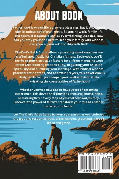 Being a father comes with incredible joys but also significant challenges-especially when it comes to balancing faith, family, and personal growth. The Dad's Faith Guide: A 52-Week Devotional for Christian Dads is designed to offer encouragement, biblical wisdom, and practical steps to help fathers navigate the everyday struggles they face. This 52-week devotional provides a weekly focus on specific challenges-from managing stress and balancing discipline with compassion, to guiding your children spiritually and coping with exhaustion. Each devotion includes:A relevant scripture passage to ground you in God's Word. A heartfelt reflection that speaks to the realities of fatherhood. Practical action steps that can be implemented into your busy life. A closing prayer to help you seek God's strength and guidance. Whether you're a new dad or have been on the journey for years, this devotional will serve as a powerful tool for growth, offering insights and support as you strive to be the father God calls you to be. Each week invites you to lean into God's grace, embrace His guidance, and find renewed purpose in your fatherhood role. Perfect for personal study or small group discussions, A Father's Journey equips you with the spiritual tools to strengthen your relationship with God, your family, and yourself. Key Features:52 weeks of devotions specifically written for Christian dads. Practical advice for handling common fatherhood challenges. Encouragement to grow spiritually as you lead your family in faith. Ideal for personal use or group study. Step into the fatherhood journey with renewed confidence and faith-let this devotional guide you through the highs and lows, always pointing you back to the source of true strength, hope, and love. Buy now and start your journey toward deeper faith, stronger relationships, and a more fulfilled fatherhood experience!