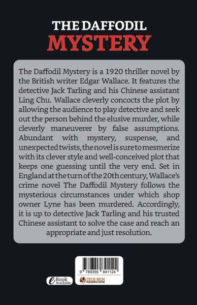 The Daffodil Mystery is a 1920 thriller novel by the British writer Edgar Wallace. It features the detective Jack Tarling and his Chinese assistant Ling Chu. Wallace cleverly concocts the plot by allowing the audience to play detective and seek out the person behind the elusive murder, while cleverly maneuverer by false assumptions. Abundant with mystery, suspense, and unexpected twists, the novel is sure to mesmerize with its clever style and well-conceived plot that keeps one guessing until the very end. Set in England at the turn of the 20th century, Wallace's crime novel The Daffodil Mystery follows the mysterious circumstances under which shop owner Lyne has been murdered. Accordingly, it is up to detective Jack Tarling and his trusted Chinese assistant to solve the case and reach an appropriate and just resolution.