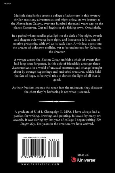 Multiple simplicities create a collage of adventure in this mystery thriller, most any adventures soul might enjoy. As we journey to the Moxcedean Galaxy, over one hundred thousand years ago, to the planet Zacterron. Our tail begins in the fishing town, Omakohak. In a period where oil lamps and candles give light to the dark of the night, swords and daggers rule wrong from right, and innocence is in a time of creative prosperity, with evil at its back door. A window opens into the dreams of unknown realities, yet to be understood by Kyhawn, the dreamer. A voyage cross the Zacton Ocean unfolds a chain of events that had long been forgotten. In this epic of friendship amongst three Zacterronians, in a world of change brought about by strange happenings and unburied treasures, which hold the fate of hope, as betrayal tries to darken the light of all that is good. As their freedom crosses the ocean into the unknown, they discover the chest they're harboring is not what it seemed.
