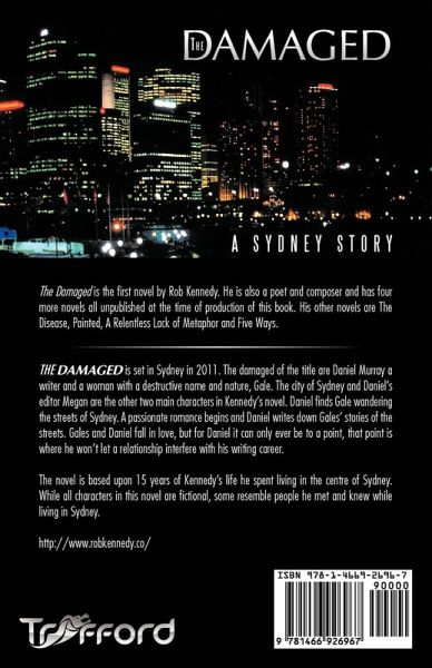 Daniel Murray - a 50-year-old writer who has won an award for a book about the visual arts. He now writes for art magazines and lives in the centre of Sydney. Here he finds a street girl, Gale. Who sweeps across the city, walking fast among the crowds, screaming out the most passionate and hurtful but poetic words. Daniel is drawn to her and immediately develops a relationship with Gale. She moves in with him on the first day they meet. They have a passionate romance. She offers to tell Daniel her stories so he can compile them into a book. Gales falls in love with Daniel and Daniel also, but only to a point, that point is where he won't let a relationship interfere with his writing career. The Damaged will bring the reader into the experience of living in Sydney and will draw the reader into the lives of two people who fall passionately in love but come up hard against each other.