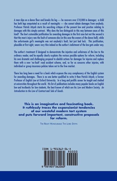 In this searching critique, Professor Atiyah shows that the present system of damages is a lottery. His conclusion is that actions for injury damages should be abolished and replaced with new insurance policies and a no-fault road accident scheme.