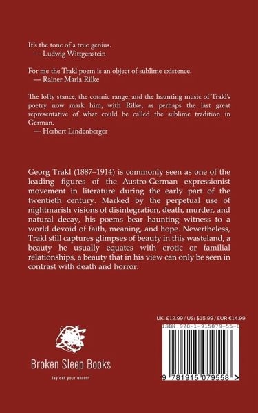 Georg Trakl (1887-1914) is commonly seen as one of the leading figures of the Austro-German expressionist movement in literature during the early part of the twentieth century. Marked by the perpetual use of nightmarish visions of disintegration, death, murder, and natural decay, his poems bear haunting witness to a world devoid of faith, meaning, and hope. Nevertheless, Trakl still captures glimpses of beauty in this wasteland, a beauty he usually equates with erotic or familial relationships, a beauty that in his view can only be seen in contrast with death and horror.