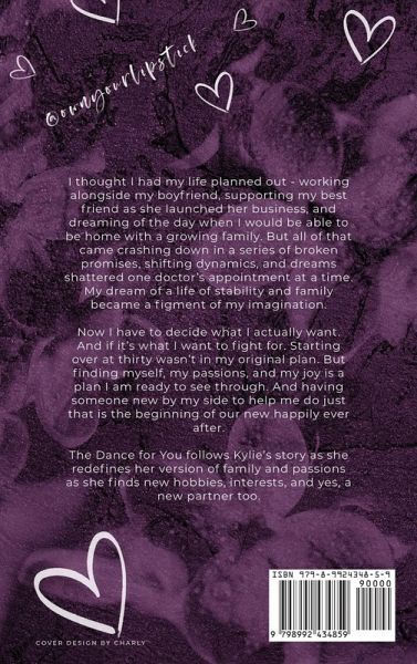 I thought I had my life planned out - working alongside my boyfriend, supporting my best friend as she launched her business, and dreaming of the day when I would be able to be home with a growing family. But all of that came crashing down in a series of broken promises, shifting dynamics, and dreams shattered one doctor's appointment at a time. My dream of a life of stability and family became a figment of my imagination. Now I have to decide what I actually want. And if it's what I want to fight for. Starting over at thirty wasn't in my original plan. But finding myself, my passions, and my joy is a plan I am ready to see through. And having someone new by my side to help me do just that is the beginning of our new happily ever after. The Dance for You follows Kylie's story as she redefines her version of family and passions as she finds new hobbies, interests, and yes, a new partner too.