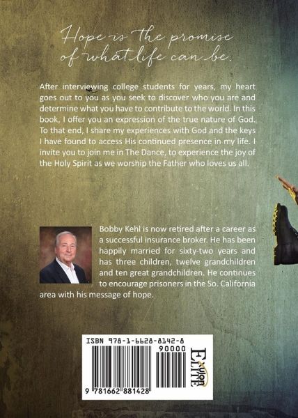 After interviewing college students for years, my heart goes out to you as you seek to discover who you are and determine what you have to contribute to the world. In this book, I offer you an expression of the true nature of God. To that end, I share my experiences with God and the keys I have found to access His continued presence in my life. I invite you to join me in The Dance, to experience the joy of the Holy Spirit as we worship the Father who loves us all. Bobby Kehl is now retired after a career as a successful insurance broker. He has been happily married for sixty-two years and has three children, twelve grandchildren and ten great grandchildren. He continues to encourage prisoners in the So. California area with his message of hope.