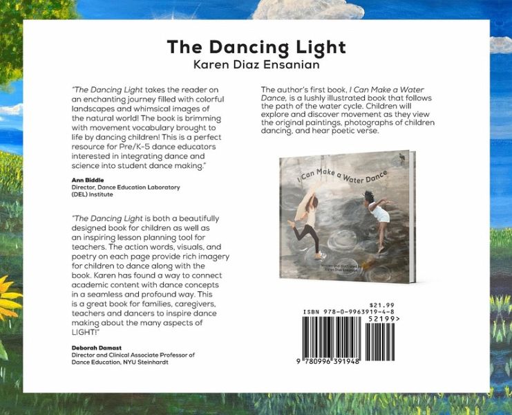 Karen started her early career in New York City as a dancer with several choreographers, including dancing as a founding member with the Alvin Ailey Repertory Company. She later received her M.A. in Dance from The Ohio State University and then taught for nineteen years as Director of Creative Movement at The Episcopal School in The City of New York. Karen also enjoys leading guest workshops at colleges and various organizations. In recent years Karen facilitated Dance Education Laboratory professional development workshops for teachers with the Department of Education in New York City. At the same time, she began teaching herself to paint as a foundation for illustrating a children's dance education book. Karen's debut book I Can Make a Water Dance was published in 2021 and has inspired countless young dancers and educators to incorporate dance with the study of natural sciences. The Dancing Light is her second book, integrating the art of making dance with the science of light. Karen currently lives with her husband in NYC where she raised two children.