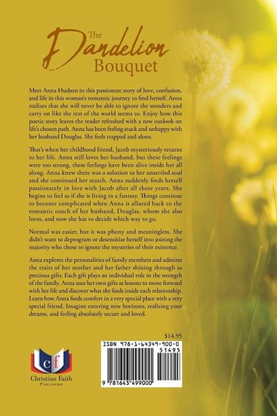 Meet Anna Hudson in this passionate story of love, confusion, and life in this woman's romantic journey to find herself. Anna realizes that she will never be able to ignore the wonders and carry on like the rest of the world seems to. Enjoy how this poetic story leaves the reader refreshed with a new outlook on life's chosen path. Anna has been feeling stuck and unhappy with her husband Douglas. She feels trapped and alone. That's when her childhood friend, Jacob mysteriously returns to her life. Anna still loves her husband, but these feelings were too strong, these feelings have been alive inside her all along. Anna knew there was a solution to her unsettled soul and she continued her search. Anna suddenly finds herself passionately in love with Jacob after all these years. She begins to feel as if she is living in a fantasy. Things continue to become complicated when Anna is allured back to the romantic touch of her husband, Douglas, whom she also loves, and now she has to decide which way to go. Normal was easier, but it was phony and meaningless. She didn't want to deprogram or desensitize herself into joining the majority who chose to ignore the mysteries of their existence. Anna explores the personalities of family members and admires the traits of her mother and her father shining through as precious gifts. Each gift plays an individual role in the strength of the family. Anna uses her own gifts as lessons to move forward with her life and discover what she finds inside each relationship. Learn how Anna finds comfort in a very special place with a very special friend. Imagine entering new horizons, realizing your dreams, and feeling absolutely secure and loved.