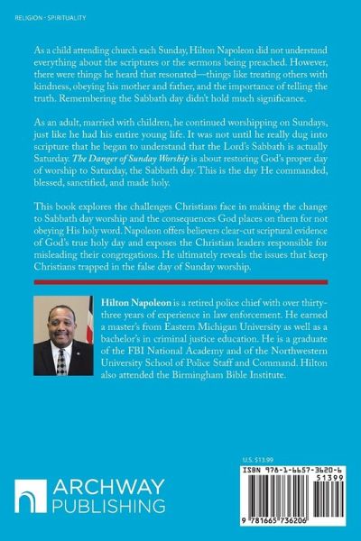 This book is about restoring God's proper day of worship to Saturday. the Sabbath day, the day he commanded, blessed, sanctified, and made holy. This book explores the challenges Christians face in making the change to Sabbath day worship, and the consequences God places on them for not obeying his holy word. This book exposes the issues that are keeping them trapped in the false day of Sunday worship. This book offers believers clear cut scriptural evidence of God's holy day of worship, and exposes the Christian leaders responsible for misleading their congregations in false Sunday worship.