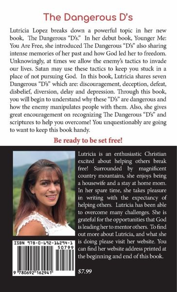 Lutricia Lopez breaks down a powerful topic in her new book, The Dangerous "D’s." In her debut book, Younger Me: You Are Free, she introduced The Dangerous "D's" also sharing intense memories of her past and how God led her to freedom. Unknowingly, at times we allow the enemy’s tactics to invade our lives. Satan may use these tactics to keep you stuck in a place of not pursuing God. In this book, Lutricia shares seven Dangerous "D's" which are: discouragement, deception, defeat, disbelief, diversion, delay and depression. Through this book, you will begin to understand why these "D’s" are dangerous and how the enemy manipulates people with them. Also, she gives great encouragement on recognizing The Dangerous "D's" and scriptures to help you overcome! You unquestionably are going to want to keep this book handy. Be ready to be set free!