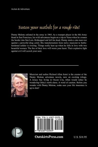 Fasten your seatbelt for a rough ride! Danny Malone enlisted in the army in 1965. As a trumpet player in the 6th Army Band in San Francisco, his wild adventures begin on a trip to Yuma when he crosses the border into San Luis. Kidnapped and left for dead, Danny starts a one-man war against a powerful drug cartel. His transformation from naïve musician to battle-hardened soldier is riveting. Things really heat up when he falls in love with two beautiful women. The fire of their love will warm your heart. Their explosive fight against evil will scorch your soul.