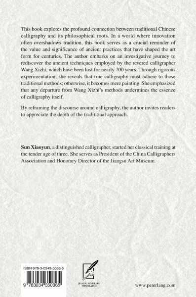 This book explores the profound connection between traditional Chinese calligraphy and its philosophical roots. In a world where innovation often overshadows tradition, this book serves as a crucial reminder of the value and significance of ancient practices that have shaped the art form for centuries. The author embarks on an investigative journey to rediscover the ancient techniques employed by the revered calligrapher Wang Xizhi, which have been lost for nearly 700 years. Through rigorous experimentation, she reveals that true calligraphy must adhere to these traditional methods; otherwise, it becomes mere painting. She emphasized that any departure from Wang Xizhi's methods undermines the essence of calligraphy itself.