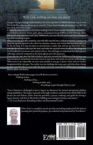 The "Dare to Be Excellent" Challenge by author Jasher Scott is an inspiring work of Christian nonfiction that pushes Christian readers to dare to be excellent in all aspects of their life and faith. This Christian self-help manual walks through key topics of faith and reliance on God, with chapters focusing on topics like trusting God; cultivating godly character; becoming a dependable and diligent person; displaying courage, compassion, and confidence; establishing a strong foundation of faith; and winning the fight against fear. Once readers take these steps toward conquering their fears and placing their trust and faith fully in God, they will fulfill their God-given dreams, plans, and desires like never before. Alongside his motivational Christian teaching, Jasher Scott also includes his original poetry to inspire and uplift the reader. Christian nonfiction; Christian life; Christian living; inspirational Christian books; Christian poetry; spiritual growth.