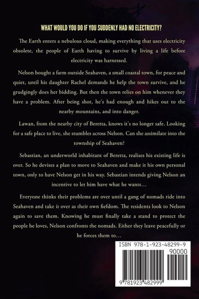 How would you survive without electricity..., anywhere? The Earth enters a nebulous cloud, making everything using electricity obsolete, the people of Earth having to survive by living a life before electricity was harnessed. Nelson lives on a farm outside Seahaven, a small coastal town, for peace and quiet, until his daughter Rachel demands he help the town survive, and he grudgingly does her bidding. But then the town relies on him whenever they have a problem. After being shot, he's had enough and hikes out into the nearby mountains, and into danger. Lawan, from the nearby city of Beretta, knows it's no longer safe. Looking for a safe place to live, she stumbles across Nelson. Can she trust him and assimilate into the township of Seahaven? Sebastian, an underworld figure in Beretta, realises his existing life is over. So he devises a plan to move to Seahaven and make it his own, only to have Nelson get in his way. Sebastian intends giving Nelson an incentive to let him have what he wants. Everyone thinks their problems are over until a gang of nomads ride into Seahaven and take it over as their own fiefdom. The residents look to Nelson again to save them. Knowing he must finally take a stand to protect the people he loves, Nelson confronts the nomads. Either they leave peacefully or he will force them out.