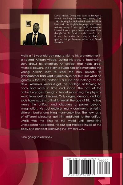 Malik a 16-year-old boy pays a visit to his grandmother in a sacred African village. During his stay, a fascinating story draws his attention. An artifact that holds great mystical powers. The story seduces him and motivates the young African boy to steal the holy object. His grandmother had kept it jealously in her hut. But what he ignores is that the artifact is a curse and belongs to the devil. Whoever wears it get the privilege of leaving his body and travel in time and space. The host of the artifact voyages through a tunnel separating the physical world from spiritual realms. Only angels, demons, and lost souls have access to that tunnel.At the age of 18, the boy wears the artifact and discovers a power beyond imagination. His soul explores many continents, entering different bodies and living many crazy lives. The new taste of different pleasures got him addicted to the artifact .Malik was the king of the world until something unexpected happened. His soul got trapped inside of the spiritual realm.