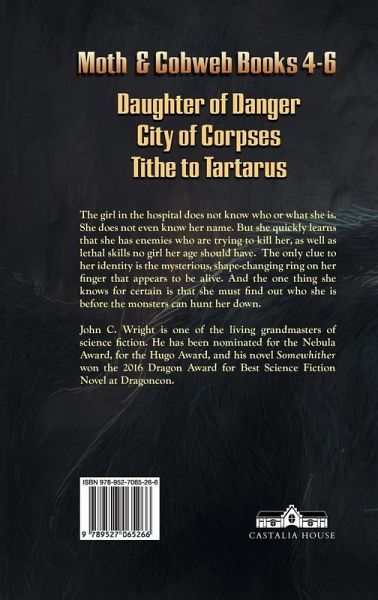 The nameless girl does not know who or what she is. She does not even know her name. But she quickly learns that she has enemies who are trying to kill her, as well as lethal skills that no girl her age should know. And, she inadvertently discovers, she can also fly. Her only clue to her identity is the mysterious, shape-changing ring on her finger that appears to be alive. And the one thing she knows for a certainty is that she must find out who she is before the monsters chasing her are able to hunt her down. THE DARK AVENGER'S SIDEKICK is a trilogy that contains DAUGHTER OF DANGER, CITY OF CORPSES, and TITHE TO TARTARUS, It is the second trilogy in the MOTH & COBWEB series, an astonishing dodecaology about magical worlds of Day, Night, and Twilight by John C. Wright. John C. Wright is one of the living grandmasters of science fiction and the author of THE GOLDEN AGE, AWAKE IN THE NIGHT LAND, and IRON CHAMBER OF MEMORY, to name just three of his exceptional books. He has been nominated for both the Nebula and Hugo Awards, and his novel SOMEWHITHER won the 2016 Dragon Award for Best Science Fiction Novel at Dragoncon.