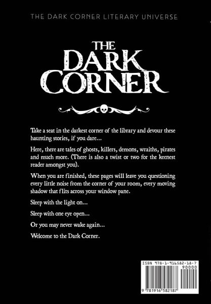 Welcome to the Dark Corner. Begin your journey through 11 short haunting stories set in a shared universe where not all is as it seems... Explore the tale of a cursed haunting before learning of the Pain Wraiths; created only to experience pain and suffering in order to draw power from it. Then delve into the strange story of the Stevenson House where families move in, but never move out. See what happens when a cheating husband is followed on an expedition by his dead wife. Venture into the far flung future when following the death of his crew, one starship captain learns he is not alone after all... Meet Kathryn and Kristin as they embark on their first adventures gathering the most haunted items in the world for their museum, and hunting cursed pirate treasure. All these tales and more are within these pages. In this updated and revised edition, you will also find the anniversary edition bonus story, Red Christmas, which details the events of a group of young thieves, determined to steal from a high tech superstore just before Christmas. Only... the store fights back. There is also BRAND NEW BONUS CONTENT in this edition only, and never before published, in the form of short story 'Cancelled' which covers the before and aftermath of the story 'Life After Life.' Sleep with one eye open, and leave the light on as this is only the beginning of the journey...