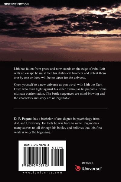 Lith has fallen from grace and now stands on the edge of ruin. Left with no escape he must face his diabolical brothers and defeat them one by one or there will be no dawn for the universe. Open yourself to a new universe as you travel with Lith the Dark Exile who must fight against his inner turmoil as he prepares for his ultimate confrontation. The battle sequences are mind-blowing and the characters and story are unforgettable.