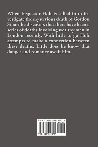 When Inspector Holt is called in to investigate the mysterious death of Gordon Stuart he discovers that there have been a series of deaths involving wealthy men in London recently. With little to go Holt attempts to make a connection between these deaths. Little does he know that danger and romance await him.