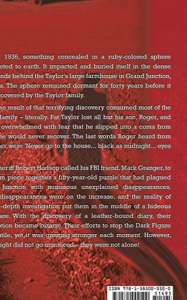In 1936, something concealed in a ruby-colored sphere plummeted to earth. It impacted and buried itself in the dense woodlands behind the Taylor's large farmhouse in Grand Junction, Georgia. The sphere remained dormant for forty years before it was discovered by the Taylor family. The result of that terrifying discovery consumed most of the Taylor family - literally. Pat Taylor lost all but his son, Roger, and was so overwhelmed with fear that he slipped into a coma from which he would never recover. The last words Roger heard from his father were 'Never go to the house... black as midnight... eyes of fire... ' Sheriff Robert Hudson called his FBI friend, Mark Granger, to help him piece together a fifty-year-old puzzle that had plagued Grand Junction with numerous unexplained disappearances. These disappearances were on the increase, and the reality of their in-depth investigation put them in the middle of a hideous nightmare. With the discovery of a leather-bound diary, their assumption became bizarre. Their efforts to stop the Dark Figure were futile, yet it was growing stronger each moment. However, their plight did not go unnoticed - they were not alone!