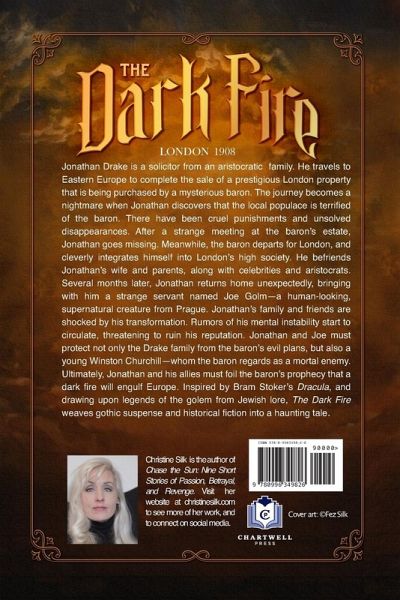 One man's determination to save his family from evil will save Europe from the dark fire. London 1908. Jonathan Drake is a solicitor from an aristocratic family. He travels to Eastern Europe to complete the sale of a prestigious London property that is being purchased by a mysterious baron. The journey becomes a nightmare when Jonathan discovers that the local populace is terrified of the baron. There have been cruel punishments and unsolved disappearances. After a strange meeting at the baron's estate, Jonathan goes missing. Meanwhile, the baron departs for London, and cleverly integrates himself into London's high society. He befriends Jonathan's wife and parents, along with celebrities and aristocrats. Several months later, Jonathan returns home unexpectedly, bringing with him a strange servant named Joe Golm-a human-looking, supernatural creature from Prague. Jonathan's family and friends are shocked by his transformation. Rumors of his mental instability start to circulate, threatening to ruin his reputation. Jonathan and Joe must protect not only the Drake family from the baron's evil plans, but also a young Winston Churchill-whom the baron regards as a mortal enemy. Ultimately, Jonathan and his allies must foil the baron's prophecy that a dark fire will engulf Europe, and eventually, the world. Inspired by Bram Stoker's Dracula, and drawing upon legends of the golem from Jewish lore, The Dark Fire weaves gothic suspense, supernatural horror, and historical fiction into a haunting tale.
