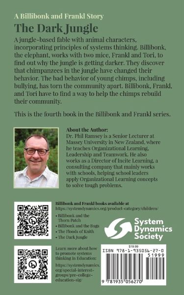 A jungle-based fable with animal characters, incorporating principles of systems thinking. Billibonk the elephant works with two mice, Frankl and Tori, to find out why the jungle is getting darker. They discover that chimpanzees in the jungle have changed their behavior. The bad behavior of young chimps, including bullying, has torn the community apart. Billibonk, Frankl, and Tori have to find a way to help the chimps rebuild their community. This is the fourth book in the Billibonk series of children's fables.