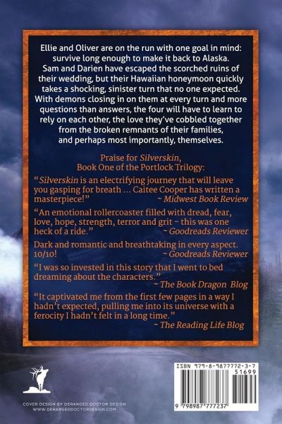 Ellie and Oliver are on the run with one goal in mind: survive long enough to make it back to Alaska. Sam and Darien have escaped the scorched ruins of their wedding, but their Hawaiian honeymoon quickly takes a shocking, sinister turn that no one expected. With dangers closing in on them at every turn and more questions than answers, the four will have to learn to rely on each other, the love they've cobbled together from the broken remnants of their families, and perhaps most importantly, themselves. Praise for Silverskin, Book One of the Portlock Trilogy: "Silverskin is an electrifying journey that will leave you gasping for breath ... Caitee Cooper has written a masterpiece!" - Midwest Book Review "An emotional rollercoaster filled with dread, fear, love, hope, strength, terror and grit - this was one heck of a ride." - Goodreads Reviewer Dark and romantic and breathtaking in every aspect. 10/10! - Goodreads Reviewer "I was so invested in this story that I went to bed dreaming about the characters." - The Book Dragon Blog "It captivated me from the first few pages in a way I hadn't expected, pulling me into its universe with a ferocity I hadn't felt in a long time." - The Reading Life Blog