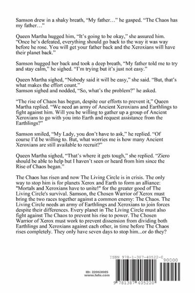 The Chaos has risen and now The Living Circle is in crisis. The only way to stop The Chaos is for planets Xerox and Earth to form an alliance: "Mortals and Xeroxians have to unite!" for the greater good of The Living Circle's survival. Samson, the Chosen Warrior of Xerox must bring the two races together against a common enemy: The Chaos. The Chaos is rising on every planet in The Living Circle, so every planet and every race must fight The Chaos. The Chosen Warrior of Xerox must work to prevent dissension from dividing both Earthlings and Xeroxians against each other, in time before The Chaos rises completely. They only have seven days to stop him...or do they?