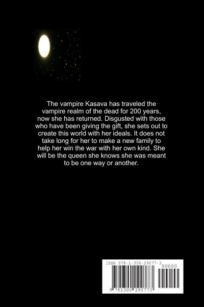 A vampire that has traveled the vampire realm of the dead for 200 years is back. Disgusted with those who have been giving the gift, she sets out to create this world with her ideals and as their queen.