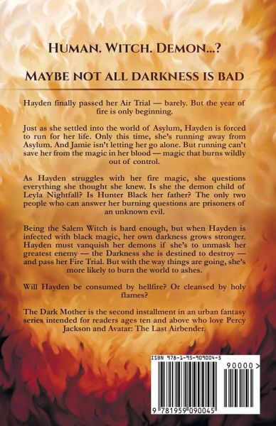 Human. Witch. Demon...? Maybe not all darkness is bad. Hayden finally passed her Air Trial - barely. But the year of fire is only beginning. Just as she settled into the world of Asylum, Hayden is forced to run for her life. Only this time, she's running away from Asylum. And Jamie isn't letting her go alone. But running can't save her from the magic in her blood - magic that burns wildly out of control. As Hayden struggles with her fire magic, she questions everything she thought she knew. Is she the demon child of Leyla Nightfall? Is Hunter Black her father? The only two people who can answer her burning questions are prisoners of an unknown evil. Being the Salem Witch is hard enough, but when Hayden is infected with black magic, her own darkness grows stronger. Hayden must vanquish her demons if she's to unmask her greatest enemy - the Darkness she is destined to destroy - and pass her Fire Trial. But with the way things are going, she's more likely to burn the world to ashes. Will Hayden be consumed by hellfire? Or cleansed by holy flames? The Dark Mother is the second installment in an urban fantasy series intended for readers ages ten and above who love Percy Jackson and Avatar: The Last Airbender.
