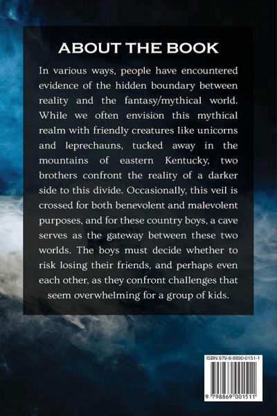 In various ways, people have encountered evidence of the hidden boundary between reality and the fantasy/mythical world. While we often envision this mythical realm with friendly creatures like unicorns and leprechauns, tucked away in the mountains of eastern Kentucky, two brothers confront the reality of a darker side to this divide. Occasionally, this veil is crossed for both benevolent and malevolent purposes, and for these country boys, a cave serves as the gateway between these two worlds. The boys must decide whether to risk losing their friends, and perhaps even each other, as they confront challenges that seem overwhelming for a group of kids.