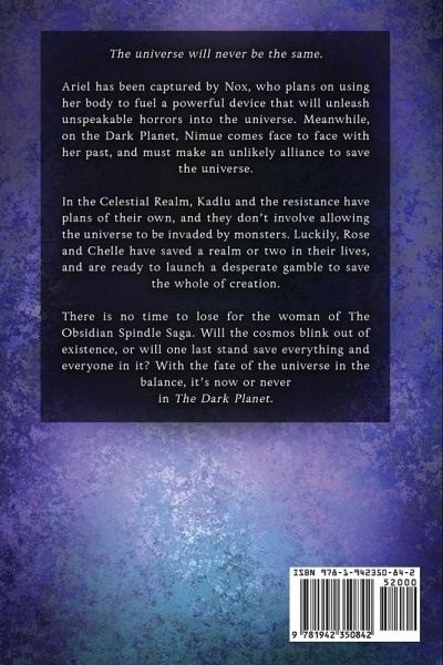 The universe will never be the same. Ariel has been captured by Nox, who plans on using her body to fuel a powerful device that will unleash unspeakable horrors into the universe. Meanwhile, on the Dark Planet, Nimue comes face to face with her past, and must make an unlikely alliance to save the universe. In the Celestial Realm, Kadlu and the resistance have plans of their own, and they don't involve allowing the universe to be invaded by monsters. Luckily, Rose and Chelle have saved a realm or two in their lives, and are ready to launch a desperate gamble to save the whole of creation. There is no time to lose for the woman of The Obsidian Spindle Saga. Will the cosmos blink out of existence, or will one last stand save everything and everyone in it? With the fate of the universe in the balance, it's now or never in The Dark Planet.